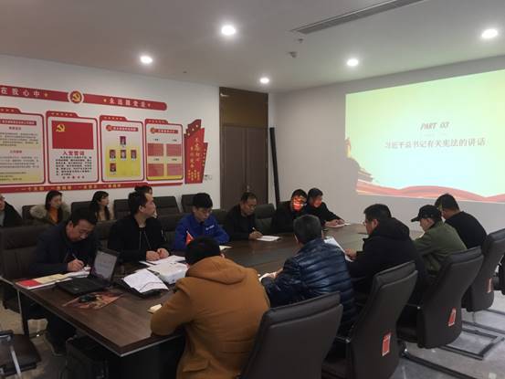 12月7日,成都公司黨支部組織各部室員工及施工單位、監(jiān)理單位相關(guān)人員開(kāi)展了“憲法進(jìn)項(xiàng)目”主題黨日活動(dòng)。此次主題黨日活動(dòng)由成都公司黨支部書(shū)記馬臻奇主持,活動(dòng)主要學(xué)習(xí)了三項(xiàng)內(nèi)容,一是學(xué)習(xí)置業(yè)公司關(guān)于做好2019年國(guó)家憲法日及憲法宣傳周有關(guān)工作的通知;二是學(xué)習(xí)《中華人民共和國(guó)憲法修正案》;三是學(xué)習(xí)習(xí)近平總書(shū)記有關(guān)憲法、全面依法治國(guó)的講話(huà)精神。