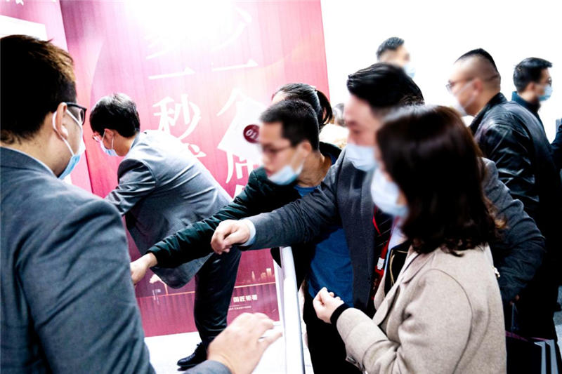 開盤期間,在現(xiàn)場工作人員的引導(dǎo)下,到場客戶按照防疫要求,有序進(jìn)入營銷中心。雖然每個人都帶著口罩,卻依然能感受到客戶洋溢的笑容,每位客戶都心懷憧憬,對理想居所的期盼溢于言表。隨著主持人宣布選房開始,將氣氛推至高潮,客戶憑鎖資號有序進(jìn)入選房區(qū),爭分奪秒挑選心儀的房源。