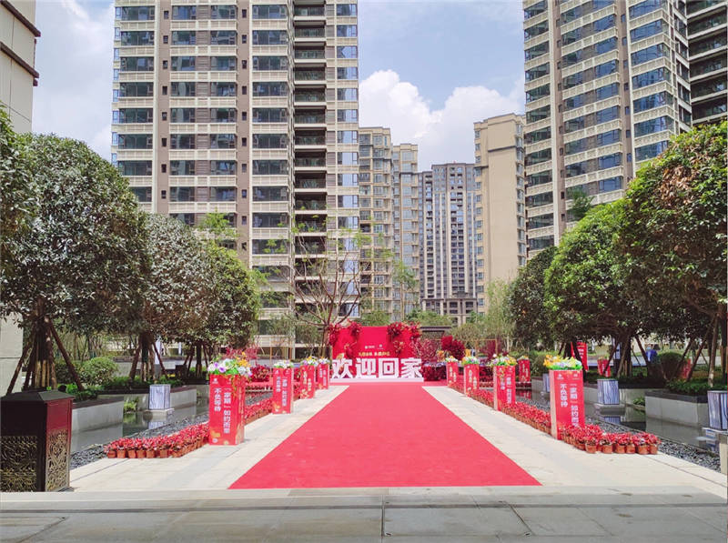 為了本次交房順利有序進行,成都公司組織專業(yè)技術人員對每一套房子進行高標準、嚴要求的預檢,對交房的各環(huán)節(jié)進行嚴格把關,并提前進行了多次交房演練。在交房前,工作人員提前為每一位業(yè)主準備好了相關查驗及簽約資料,使業(yè)主能夠在最短的時間內完成看房前的一系列程序。交付現(xiàn)場設置了“資料查驗區(qū)”“物業(yè)簽約區(qū)”“禮品發(fā)放區(qū)”“財務繳費區(qū)”四個功能區(qū)域,確保為業(yè)主提供快捷、有序的收房服務。除此之外,為了讓業(yè)主真正感受到回家的溫馨,在營銷中心、物業(yè)中心及小區(qū)多出處設置及張貼了“歡迎回家”的標語;小區(qū)的主道路旁及物業(yè)中心門口花團錦簇;小區(qū)入口處鋪設了紅色地毯等,喜慶、和諧、快樂洋溢在小區(qū)的各個角落……