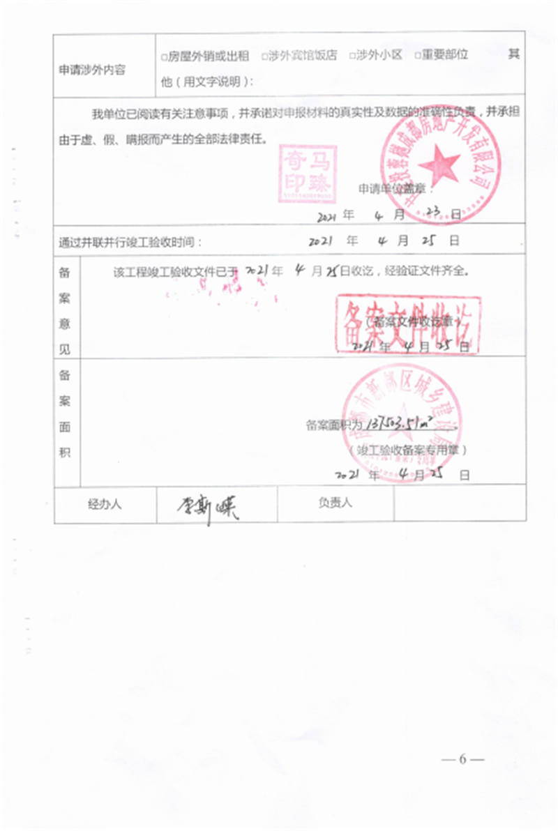 4月25日,成都百酈錦城、上海甘建投商務(wù)廣場(chǎng)項(xiàng)目程工取得《建筑工程綜合竣工驗(yàn)收合格通知書(shū)》標(biāo)志著項(xiàng)目已正式完成竣工驗(yàn)收,全面進(jìn)入交付階段。