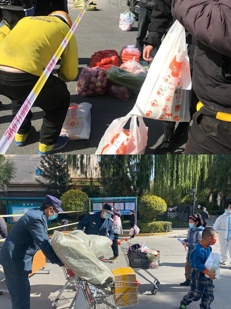 為了保證全小區(qū)住戶吃飯問題,分公司人員和物業(yè)工作人員在濱河小鎮(zhèn)小區(qū)門口警戒線一線之隔內(nèi)外對接,馬不停蹄幫忙運送食材及生活用品。期間分公司部分人員也加入了運送隊伍,解決轉(zhuǎn)運人員不足的問題。