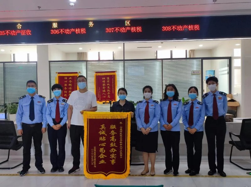 9月9日,置業(yè)公司將寫有“服務(wù)高效辦實(shí)事,真誠貼心為企業(yè)”的錦旗送至七里河稅務(wù)局政務(wù)大廳辦稅窗口,用最質(zhì)樸、最真摯的方式對(duì)他們表示感謝。