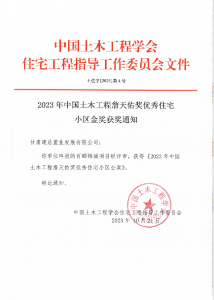 “詹天佑獎優(yōu)秀住宅小區(qū)金獎”是百酈錦城項目繼2022年榮獲地產(chǎn)行業(yè)最高榮譽(yù)“廣廈獎”之后又一國家級重要獎項,是甘肅建投首個同時獲得“廣廈獎”和“詹天佑獎優(yōu)秀住宅小區(qū)金獎”的項目,充分體現(xiàn)了業(yè)界對甘肅建投地產(chǎn)質(zhì)量、品質(zhì)及科技創(chuàng)新的肯定。