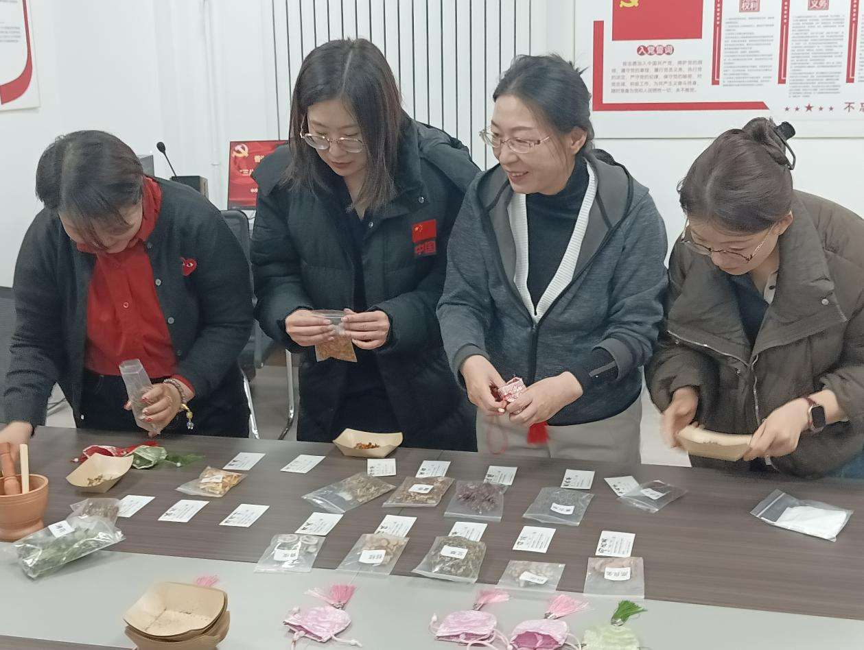 天津置業(yè)公司工作人員精心準(zhǔn)備了香囊、各式中藥等素材。中藥香囊從宮廷雅物到民間防疫良方有著千年歷史,女職工們根據(jù)不同的配方將對應(yīng)配藥組合在一起,將芬芳與祝福一同裝入囊中,最后的流蘇裝飾與封口環(huán)節(jié),大家互幫互助,一個個色彩斑斕、造型別致的香囊在指尖誕生?;顒硬粌H讓女職工們在忙碌的工作間隙放松了身心,更在縷縷清香中傳遞了節(jié)日的溫暖與關(guān)懷,展現(xiàn)了巾幗巧手風(fēng)采。
