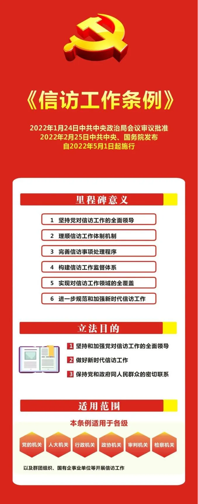 答:《條例》適用于各級(jí)黨的機(jī)關(guān)、人大機(jī)關(guān)、行政機(jī)關(guān)、政協(xié)機(jī)關(guān)、監(jiān)察機(jī)關(guān)、審判機(jī)關(guān)、檢察機(jī)關(guān),以及群團(tuán)組織、國有企事業(yè)單位等開展信訪工作。公民、法人或者其他組織通過信訪渠道,向上述各級(jí)機(jī)關(guān)、單位反映情況,提出建議、意見或者投訴請(qǐng)求等,應(yīng)當(dāng)符合《條例》規(guī)定要求。