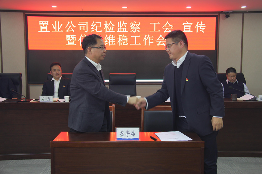 會議對2019年紀(jì)檢監(jiān)察、工會、宣傳、信訪維穩(wěn)工作進(jìn)行安排部署,公司黨委書記、總經(jīng)理李?yuàn)^旭分別與各單位簽訂《2019年黨建工作目標(biāo)責(zé)任書》、《2019年信訪目標(biāo)責(zé)任書》、《2019年黨風(fēng)廉政目標(biāo)責(zé)任書》。